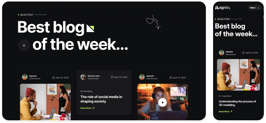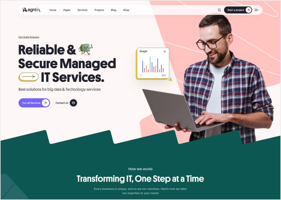 The Agntix built with modern agency ike HTML5, Bootstrap, SASS, GSAP etc. You can use it to build your dream website. So, don't waste your valuable time.